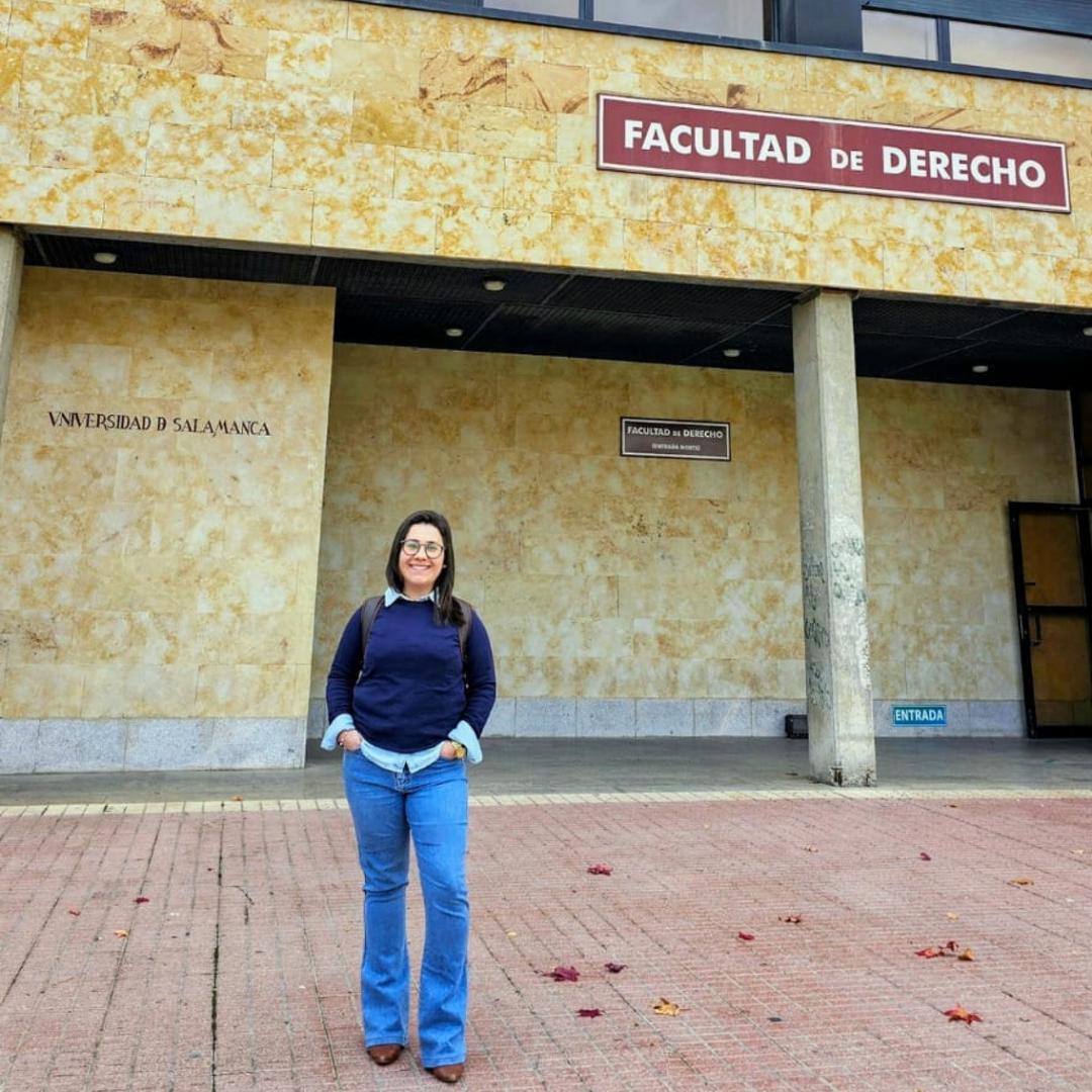 A trajetória acadêmica da advogada Débora Karoline de Oliveira Magalhães, 28 anos, egressa do curso de Direito da Urcamp Bagé e, atualmente, professora da instituição em Sant’Ana do Livramento, alcançou um novo patamar. Selecionada para o Programa de Doutorado Sanduíche no Exterior (PDSE/Capes), ela desenvolve parte de sua pesquisa na Universidade de Salamanca, na Espanha, onde tem ampliado sua atuação internacional e fortalecido vínculos institucionais importantes para a Urcamp e para o Programa de Pós-Graduação em Direito (PPGD) da Universidade de Santa Cruz (Unisc), programa ao qual está vinculada.