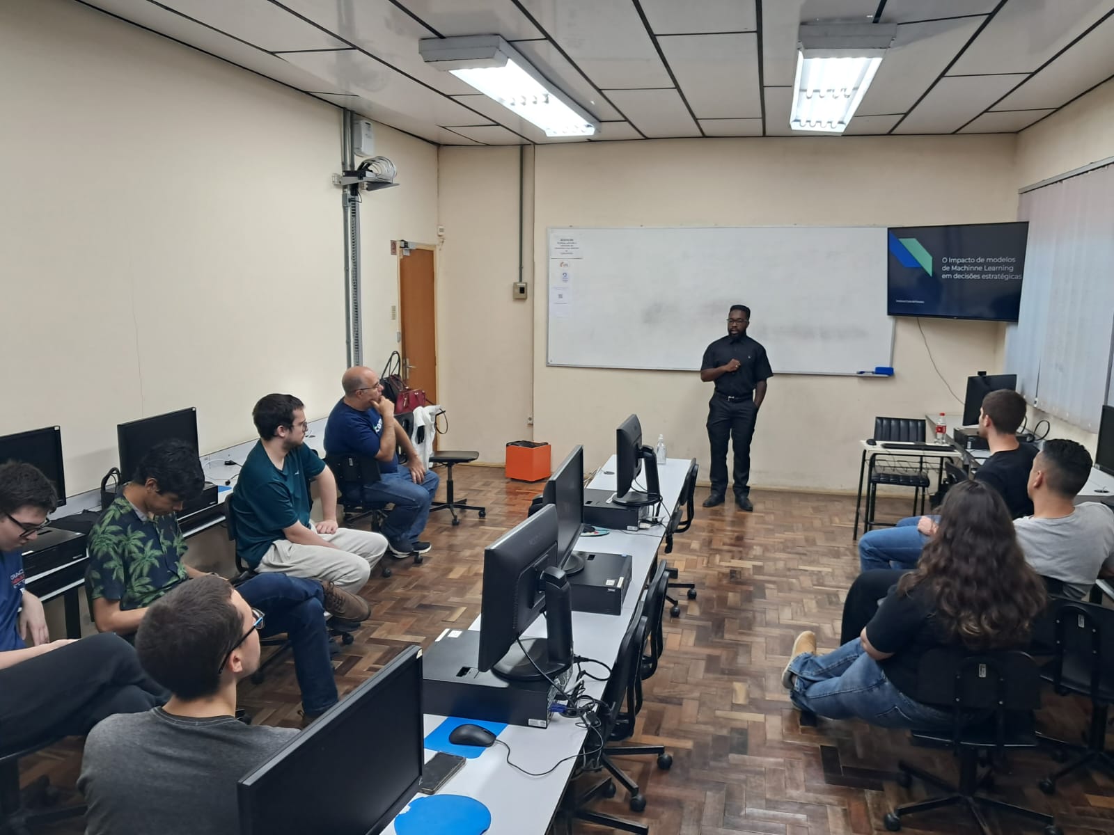 O curso de Sistemas de Informação da Urcamp promoveu, no dia 14 de novembro, no Laboratório de Informática, uma atividade voltada à aplicação do Machine Learning (aprendizado de máquina) na tomada de decisões estratégicas. A palestra, ministrada pelo profissional Matheus Costa da Fonseca, apresentou conceitos fundamentais, exemplos práticos e o papel dos dados na transformação dos processos decisórios em empresas e instituições.