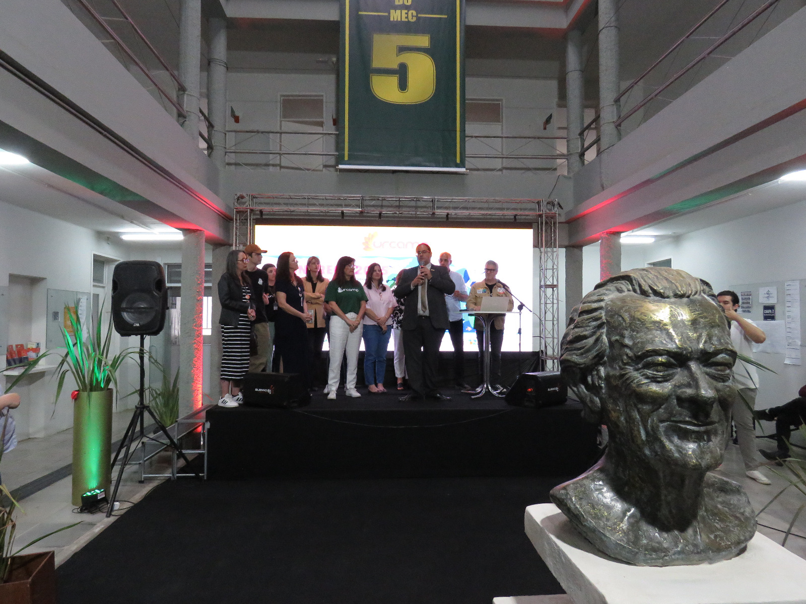 O reitor da Urcamp, professor doutor Guilherme Cassão Marques Bragança, destacou o impacto da 22ª Semana Nacional de Ciência e Tecnologia na formação científica e cidadã dos participantes. Em sua fala, emocionado, ele compartilhou momentos que simbolizam o alcance do evento. “Recebemos mensagens de escolas e visitantes elogiando a grandiosidade da nossa programação. É gratificante ver o quanto a Urcamp é importante para a região e para o Estado. Foram dias intensos, com todos os setores trabalhando em sintonia. O campus esteve impecável, e isso só foi possível graças ao empenho de professores, colaboradores e alunos. Sem vocês, nada seria possível”, ressalta.