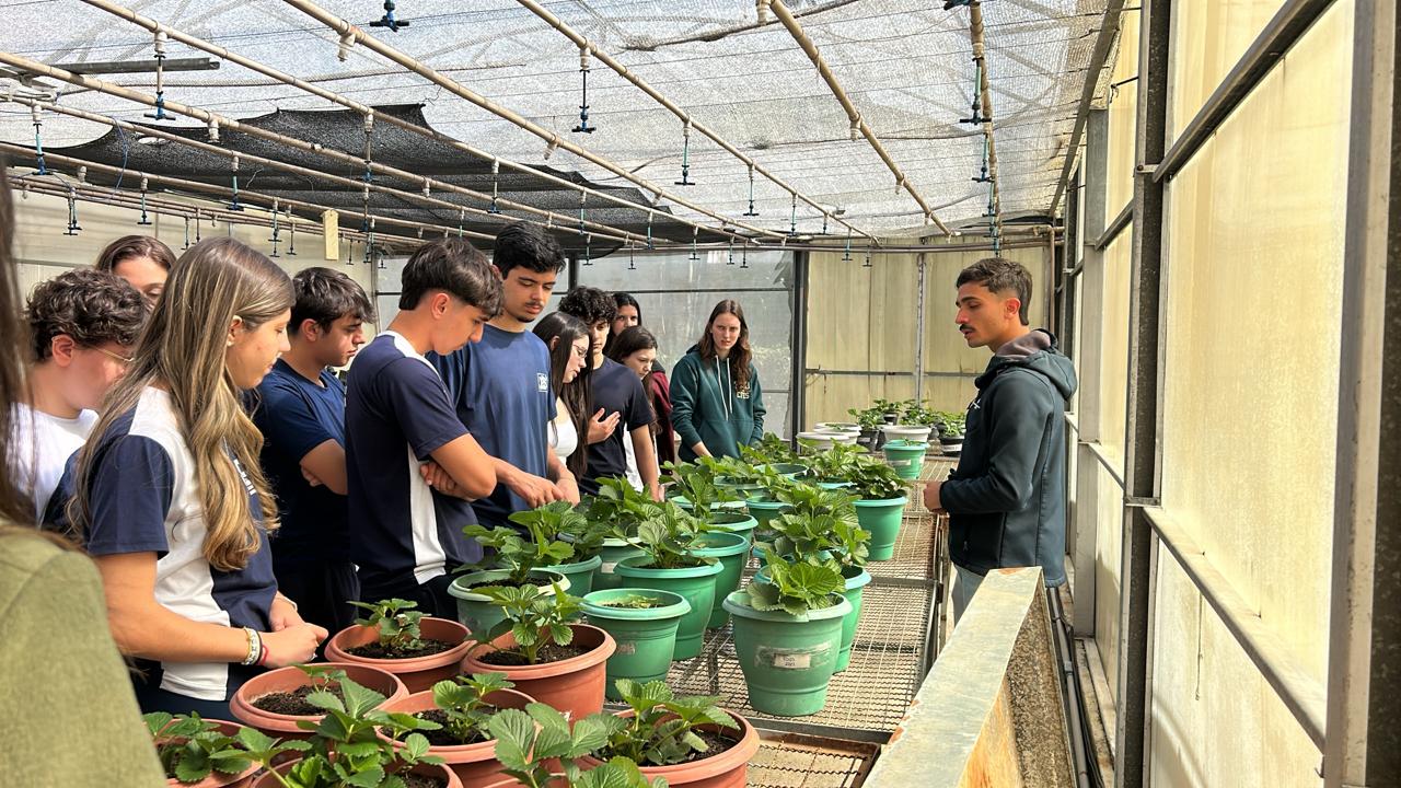 Depois, foi a vez de passarem pelo Biotec, que é o espaço para a produção de mudas de morango in vitro, onde eles conheceram também as estufas que abrigam as mudas. Após, foram encaminhados para o laboratório de microbiologia de alimentos, onde receberam informações sobre a importância da análise para avaliar a qualidade do alimento produzido na agroindústria. Já no laboratório de entomologia descobriram um trabalho dedicado ao estudo detalhado dos insetos, incluindo sua biologia, ecologia, comportamento e interação com o meio ambiente.