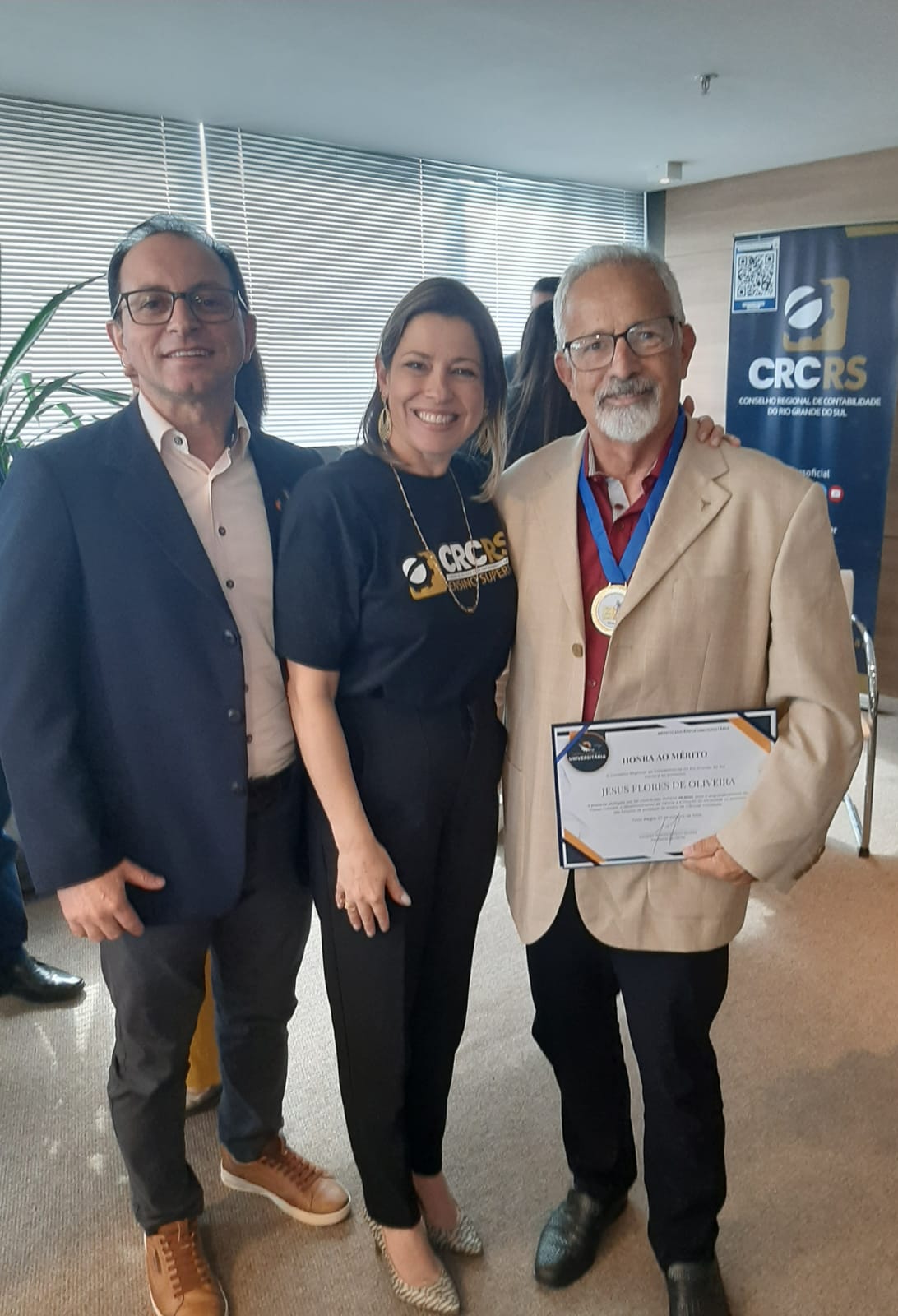 Durante o encontro, também foi entregue o Prêmio Mérito Docência Universitária 2025, reconhecimento destinado a professores do ensino superior que atuam na área contábil há 15, 25 e 30 anos. Nesta edição, o professor Jesus Flores de Oliveira, da Urcamp, foi agraciado com certificado e medalha alusivos aos 30 anos de docência, trajetória que já ultrapassa 43 anos de dedicação à educação contábil.