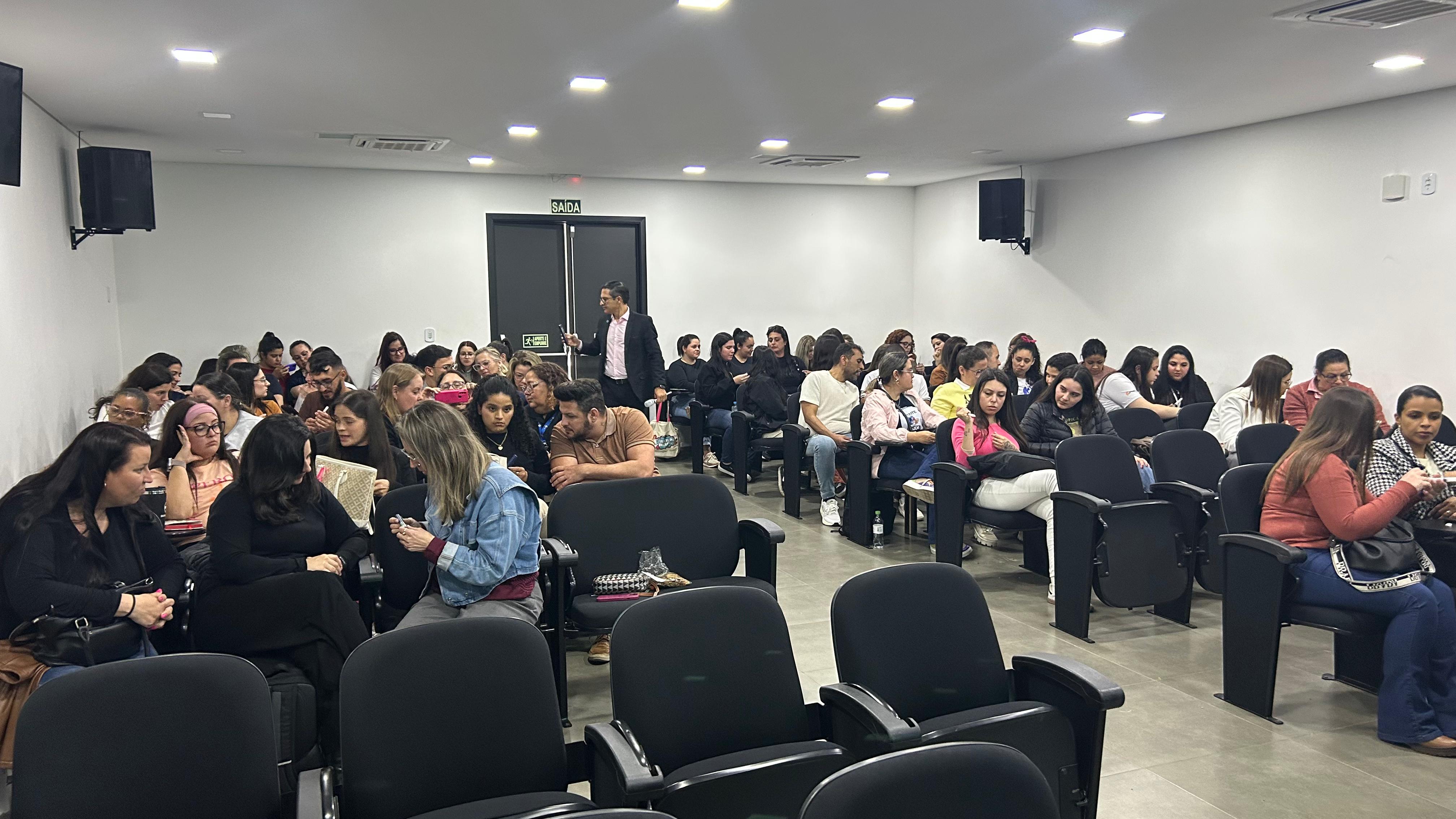 A segunda noite da Semana Acadêmica Integrada de Biomedicina e Farmácia da Urcamp, realizada nesta terça-feira (23), no Salão de Atos do Campus Central, contou com três atividades voltadas à formação técnica e ao direcionamento profissional dos acadêmicos. O evento reúne a IV Semana Acadêmica de Biomedicina e a XXVIII Semana Acadêmica de Farmácia, organizado pelos diretórios acadêmicos dos cursos, com apoio das coordenações, e segue até quinta-feira, 25, com uma programação de palestras e minicursos.