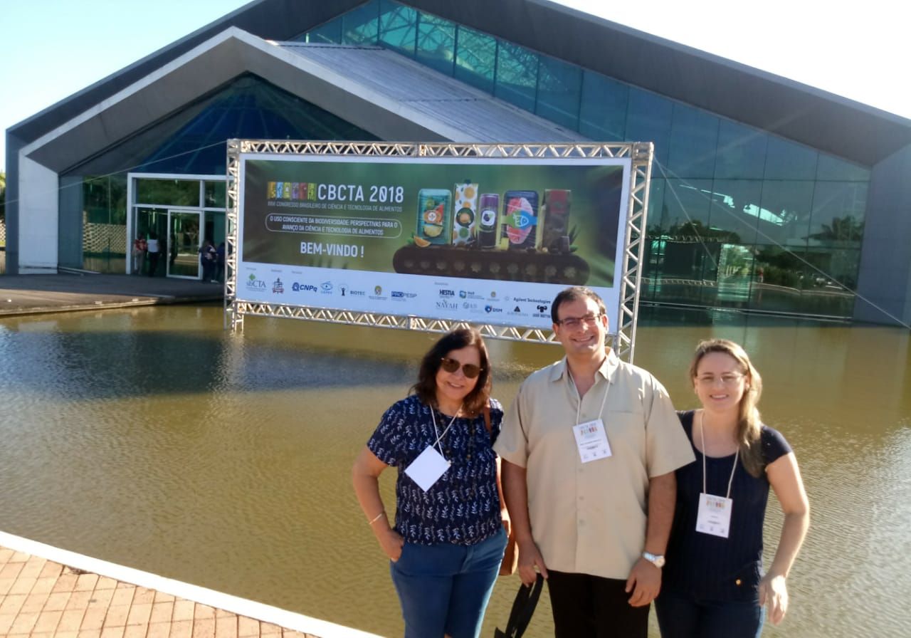 Os professores Guilherme Cassão Marques Bragança, Gabriela Schirmann e Vera Bortolini estão participando do XXVI Congresso Brasileiro de Ciência e Tecnologia de Alimentos (CBCTA).