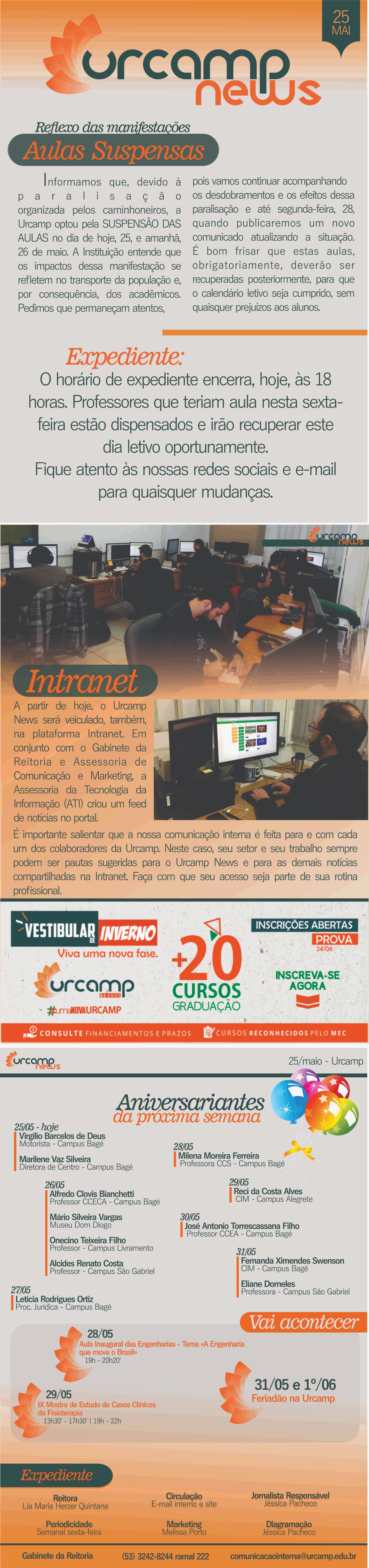 Confira as principais notícias internas da nossa instituição na edição do dia 25 de maio do Urcamp News.