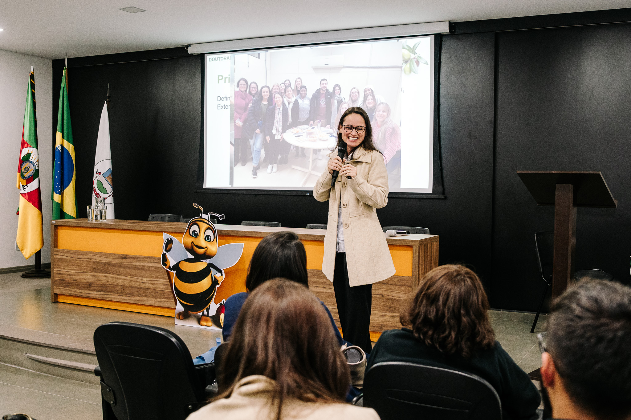 Embora a data oficial do Dia do Nutricionista seja celebrada em 31 de agosto — instituída em 1949, com a criação da Associação Brasileira de Nutricionistas —, a programação na Urcamp foi antecipada por questões de agenda. Durante o evento, a professora Gabriela da Silva Schirmann, doutoranda, apresentou a palestra “Doutorado: desafios e experiências”, em que relatou sua trajetória na pós-graduação, destacando a vivência do doutorado sanduíche.